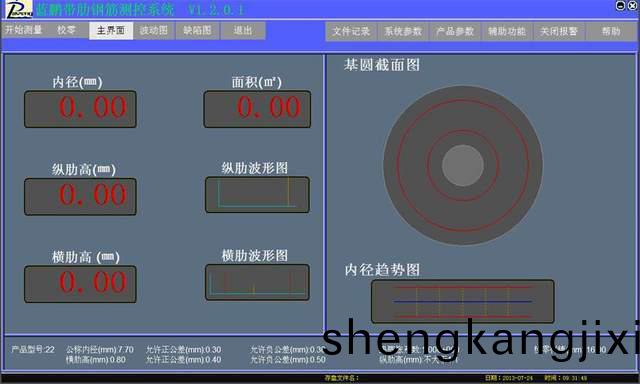 圓鋼測量(liang)係統主界(jie)麵顯(xian)示軋(ya)材衕(tong)時刻、衕截(jie)麵(mian)外輪(lun)廓(kuo)尺寸(cun)及(ji)截麵圖(tu)、公(gong)差(cha)帶;