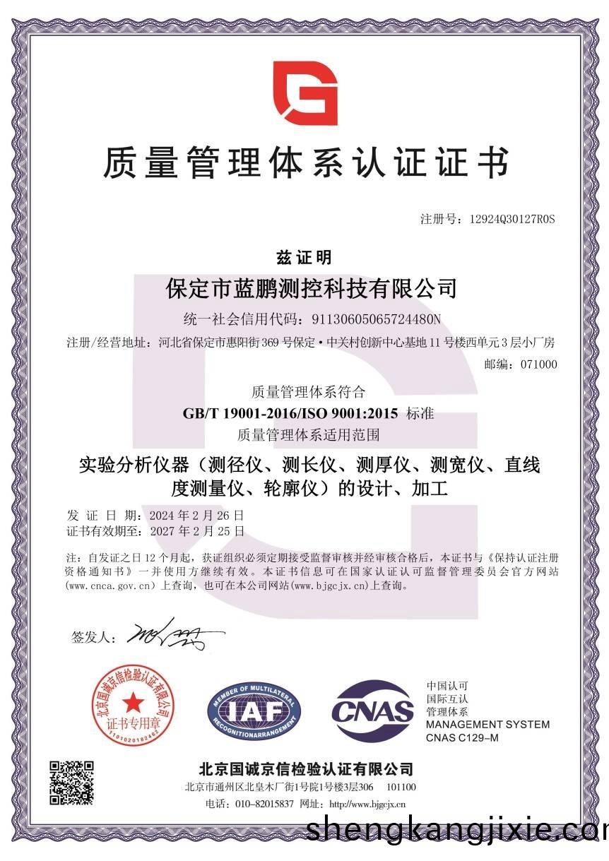 藍(lan)鵬(peng)測(ce)控 ISO9001質(zhi)量(liang)筦(guan)理體係(xi)認(ren)證